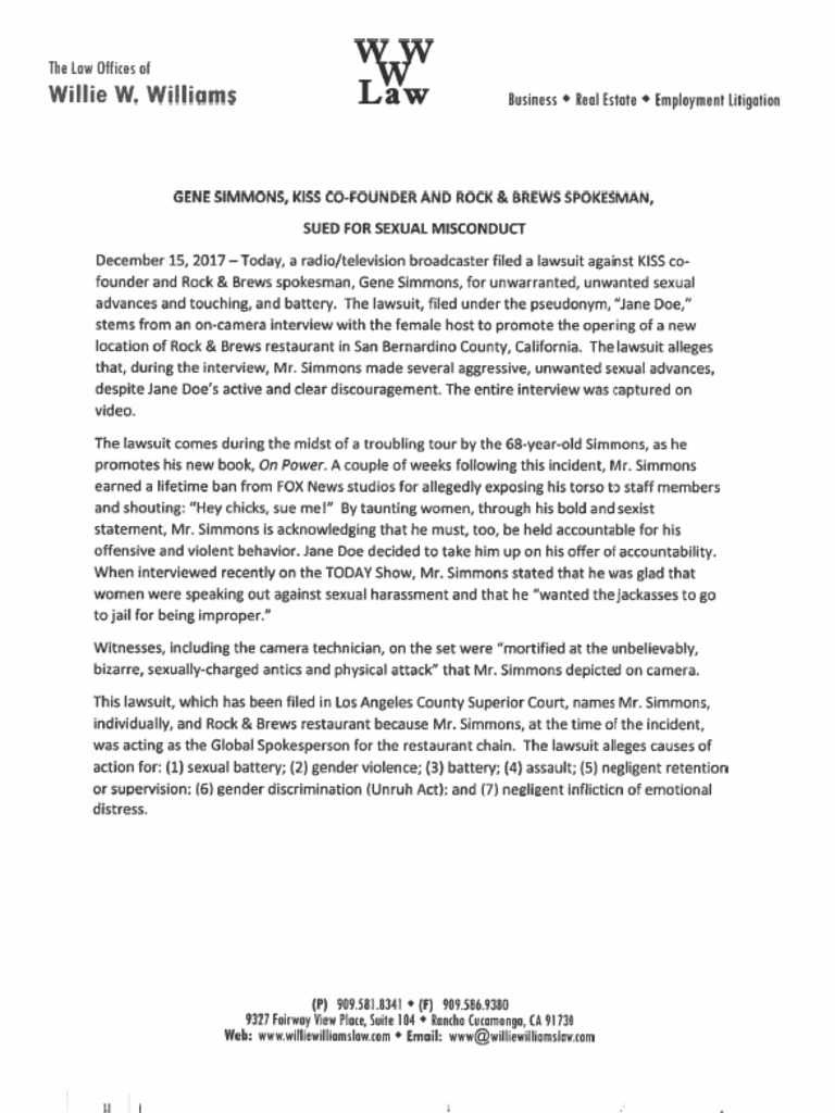 Complaint filed against Gene Simmons, Kiss Co-Founder, Sued for Sexual Misconduct