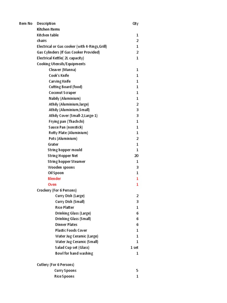 Kitchen Items