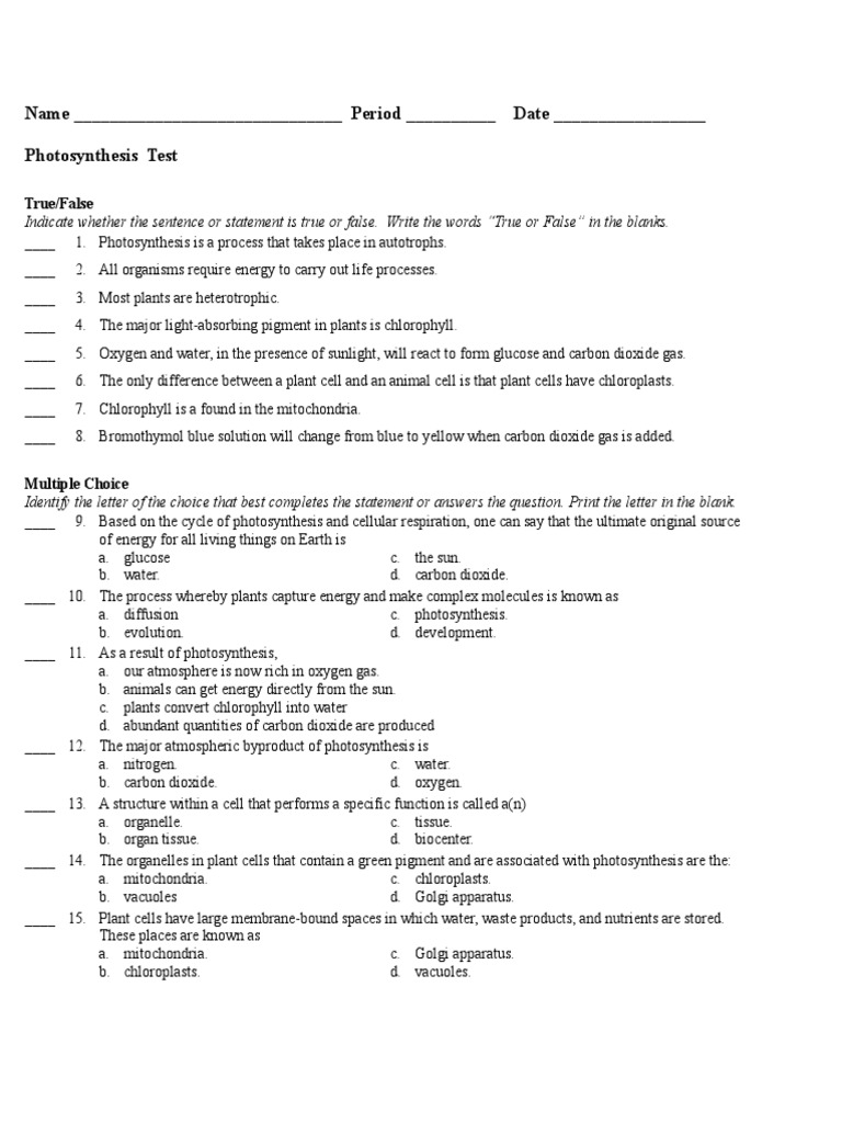Photosynthesis Test