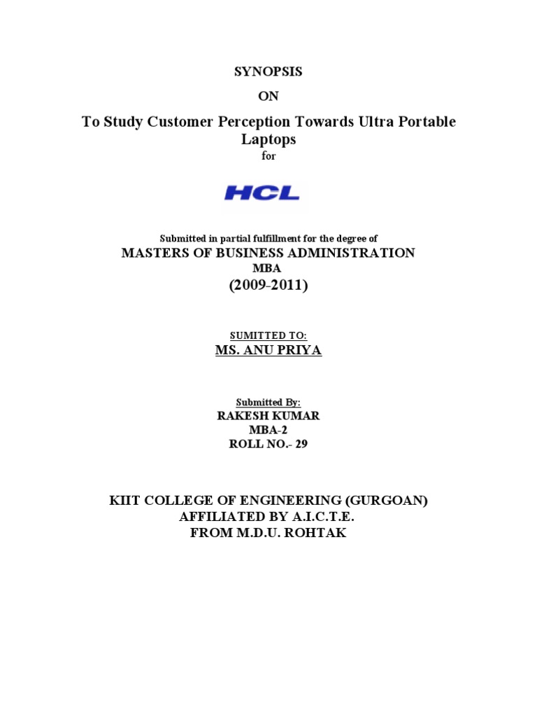 4. To study Consumer preference for HCL ulta portable laptop.