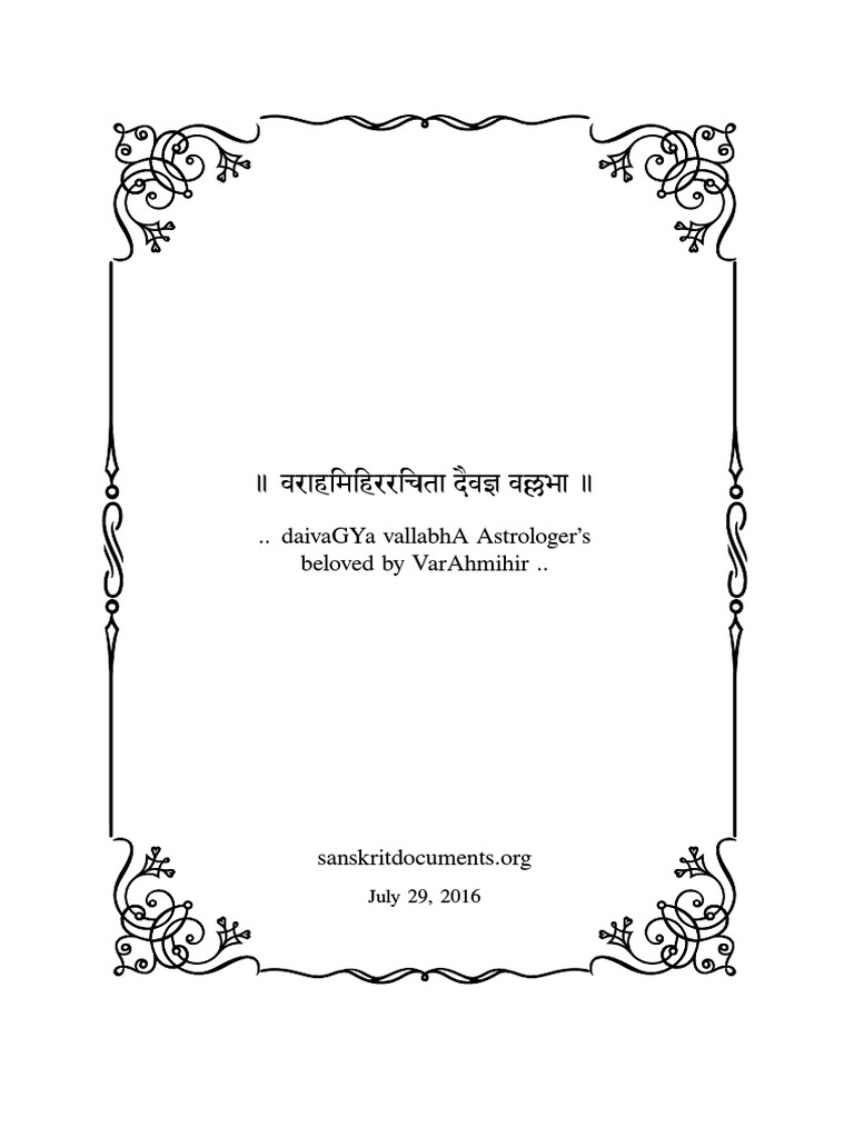 Text title : daivaGYa vallabhA Astrologers beloved by VarAhmihir