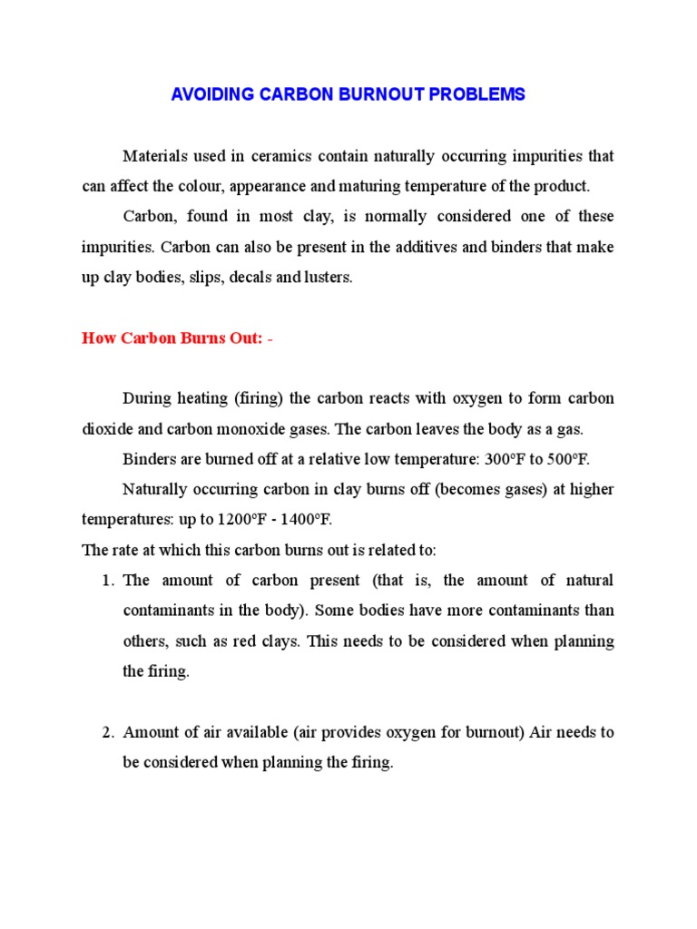 AVOIDING CARBON BURNOUT PROBLEMS