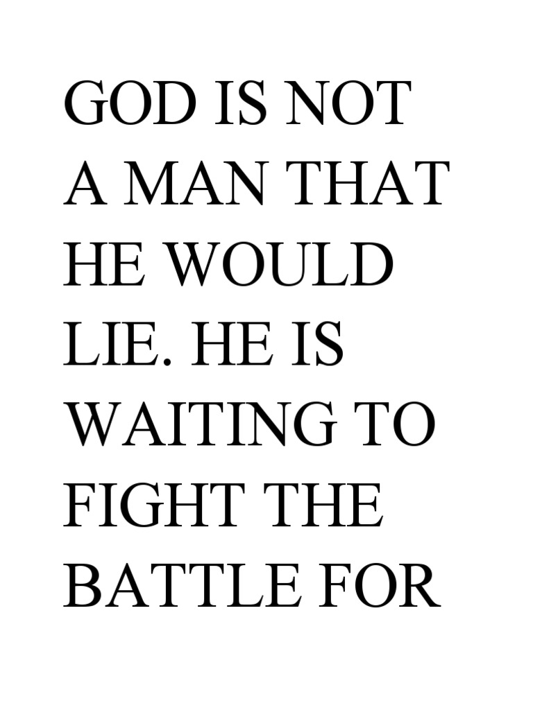 God is not human and does not lie like humans do. He is ready and willing to help fight life's battles on your behalf. All you need to do is pray and ask God for his help in your current situation.