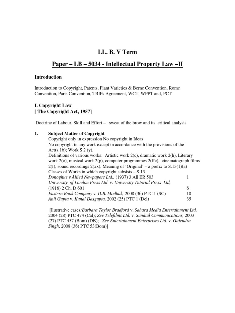 Introduction to Copyright, Patents, Plant Varieties & Berne Convention, Rome