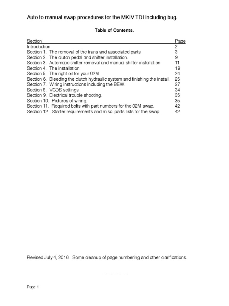 Auto to manual swap procedures for the MKIV TDI including bug.