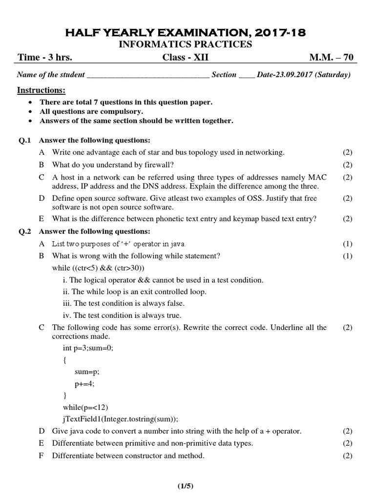 Name of the student ______________________________ Section ____ Date-23.09.2017 (Saturday)