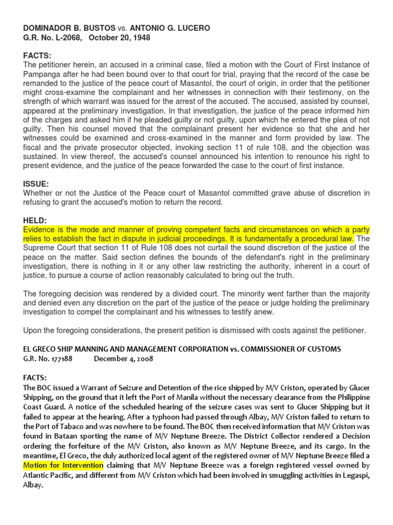 the controversy in before the Manila District Collector. Even the evidence presented by El Greco in the