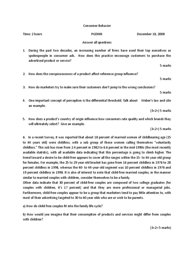 b) How would you imagine that their consumption of products and services might differ from couples