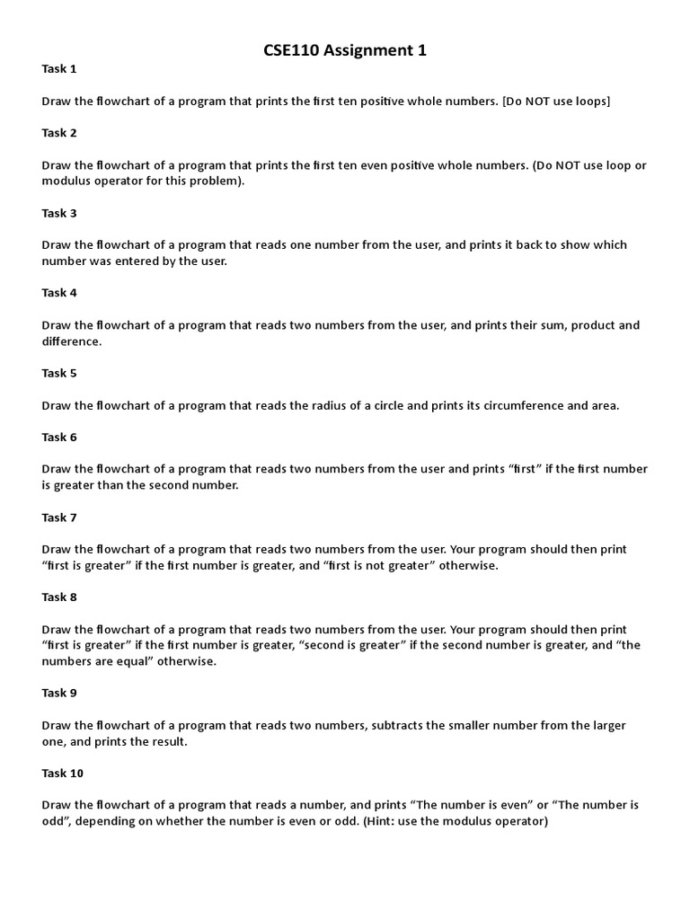 Draw the flowchart of a program that prints the first ten even positive whole numbers. (Do NOT use loop or