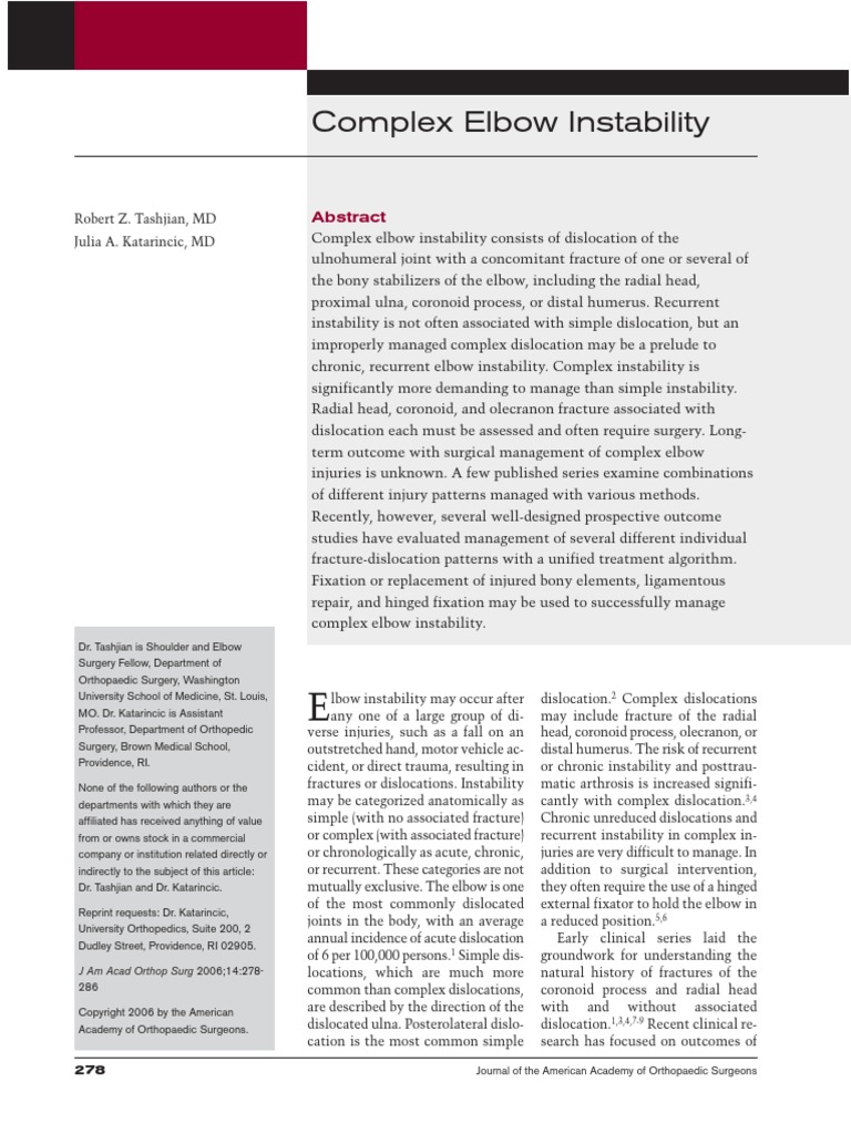 ducing the dislocation, managing the of complex elbow instability be- good or excellent results at 3 years33