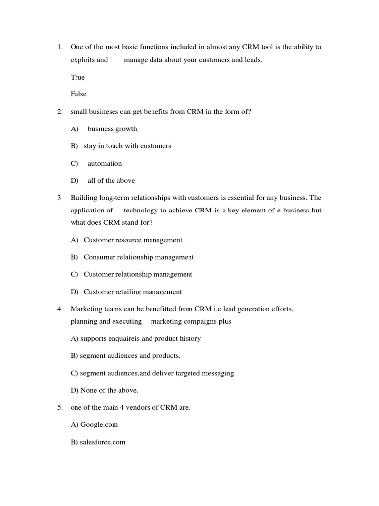 2. small busineses can get benefits from CRM in the form of?