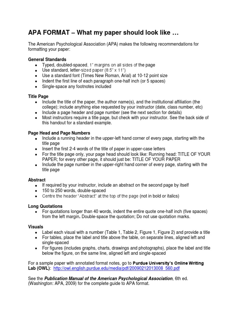For a sample paper with annotated format notes, go to Purdue University’s Online Writing
