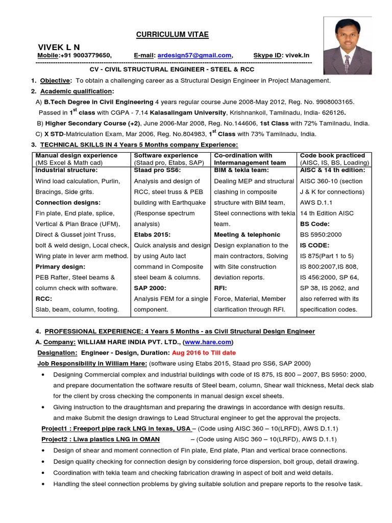 CV - CIVIL STRUCTURAL ENGINEER - STEEL & RCC