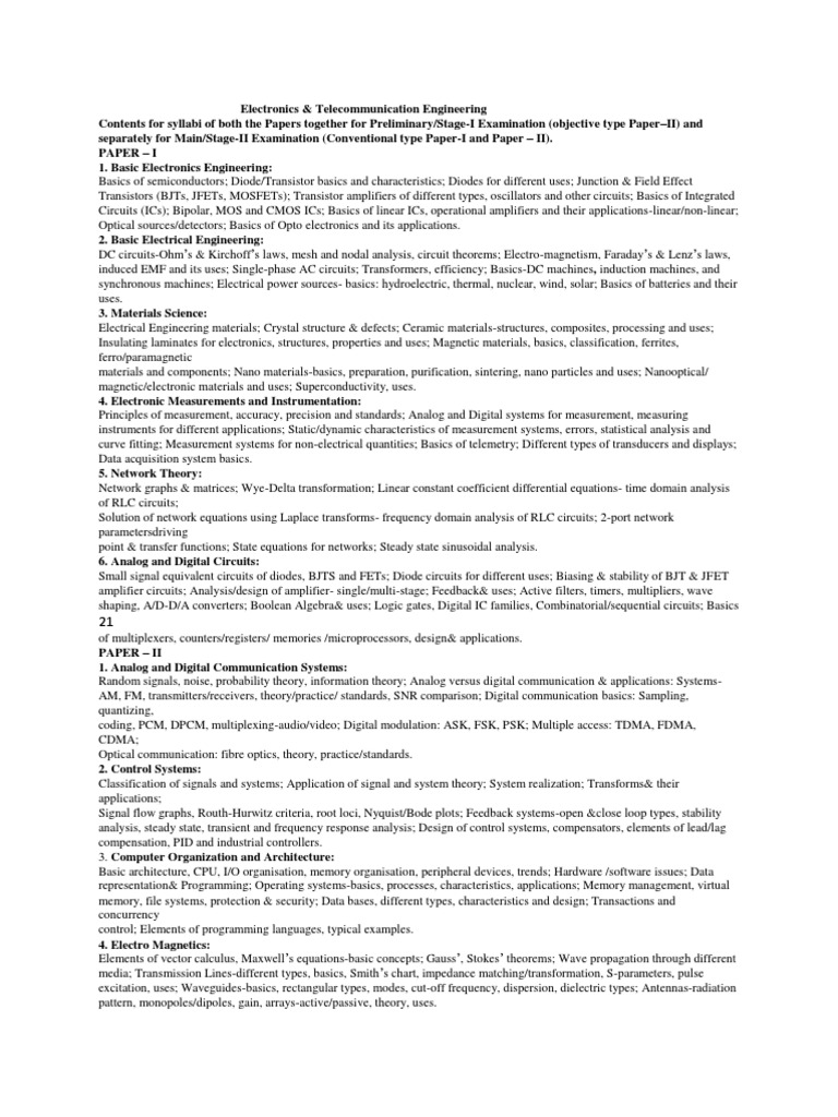 Contents for syllabi of both the Papers together for Preliminary/Stage-I Examination (objective type Paper–II) and