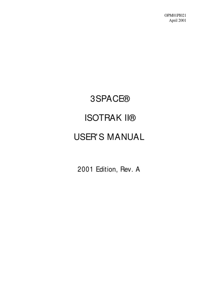 3space® Isotrak Ii® User'S Manual: 2001 Edition, Rev. A