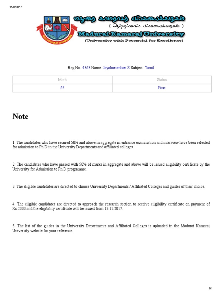 5. The list of the guides in the University Departments and Affiliated Colleges is uploaded in the Madurai Kamaraj