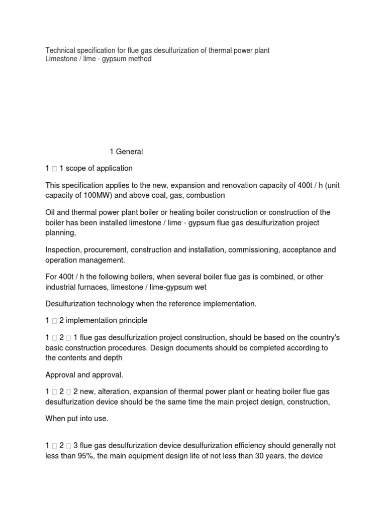 Technical specification for flue gas desulfurization of thermal power plant