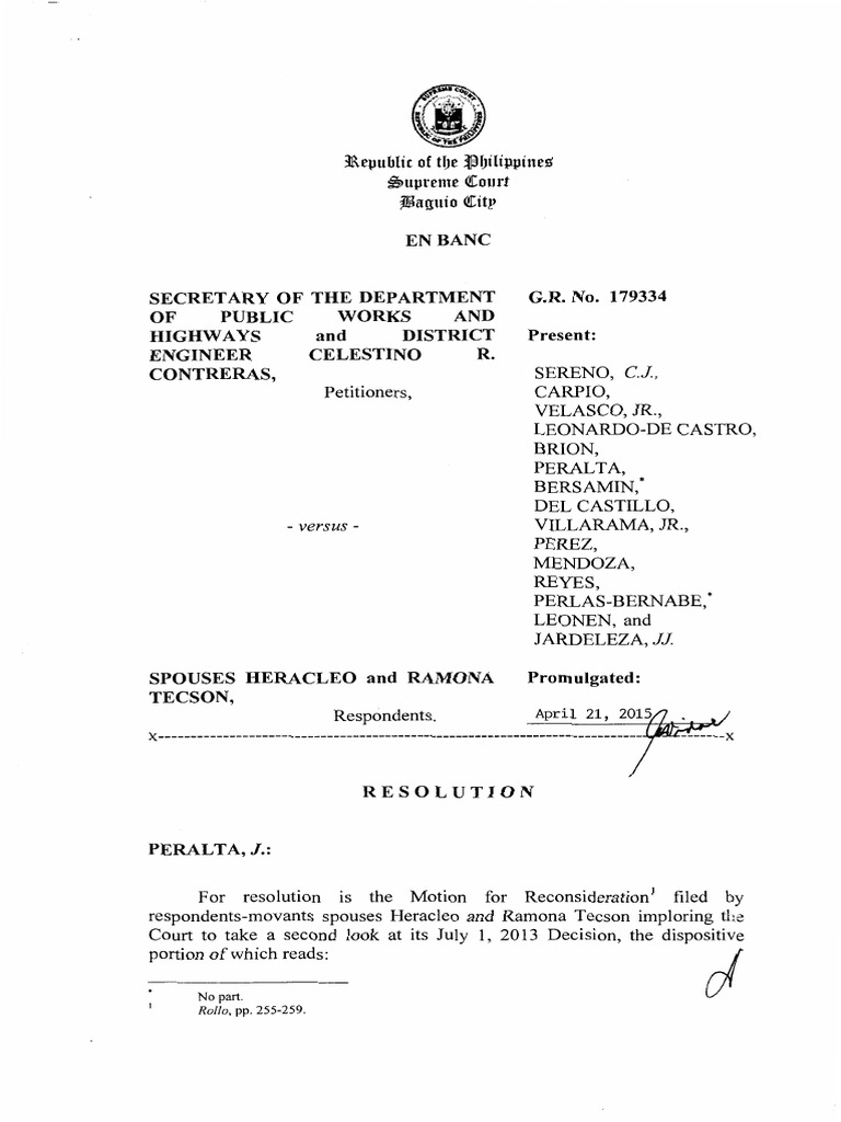 Court to take a second look at its July 1, 2013 Decision, the dispositive