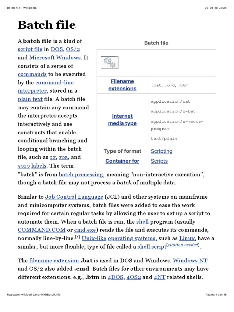 https://en.wikipedia.org/wiki/Batch_file Pagina 1 van 16
