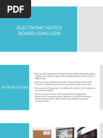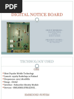 This block diagram shows the components of a GSM notice board system including a GSM modem, Arduino Uno microcontroller, 20x4 LCD display, navigation keys, buzzer, DHT11 temperature and humidity sensor, device ON/OFF relay, and power supply to control devices remotely via SMS using the GSM network.