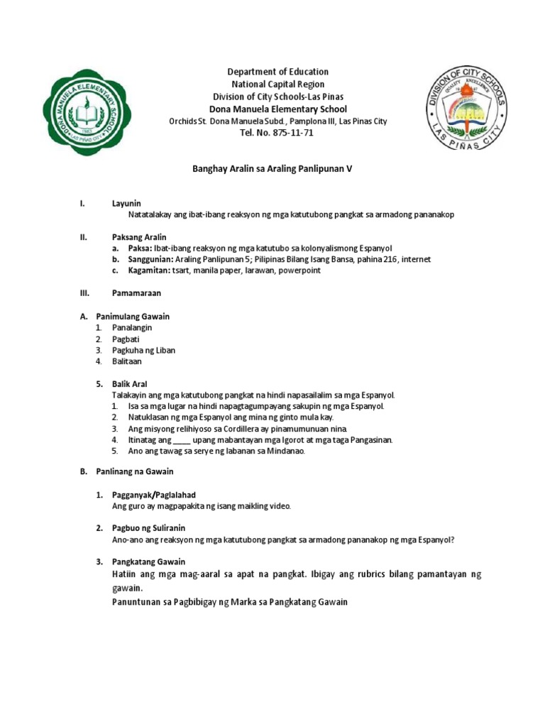 c. Kagamitan: tsart, manila paper, larawan, powerpoint