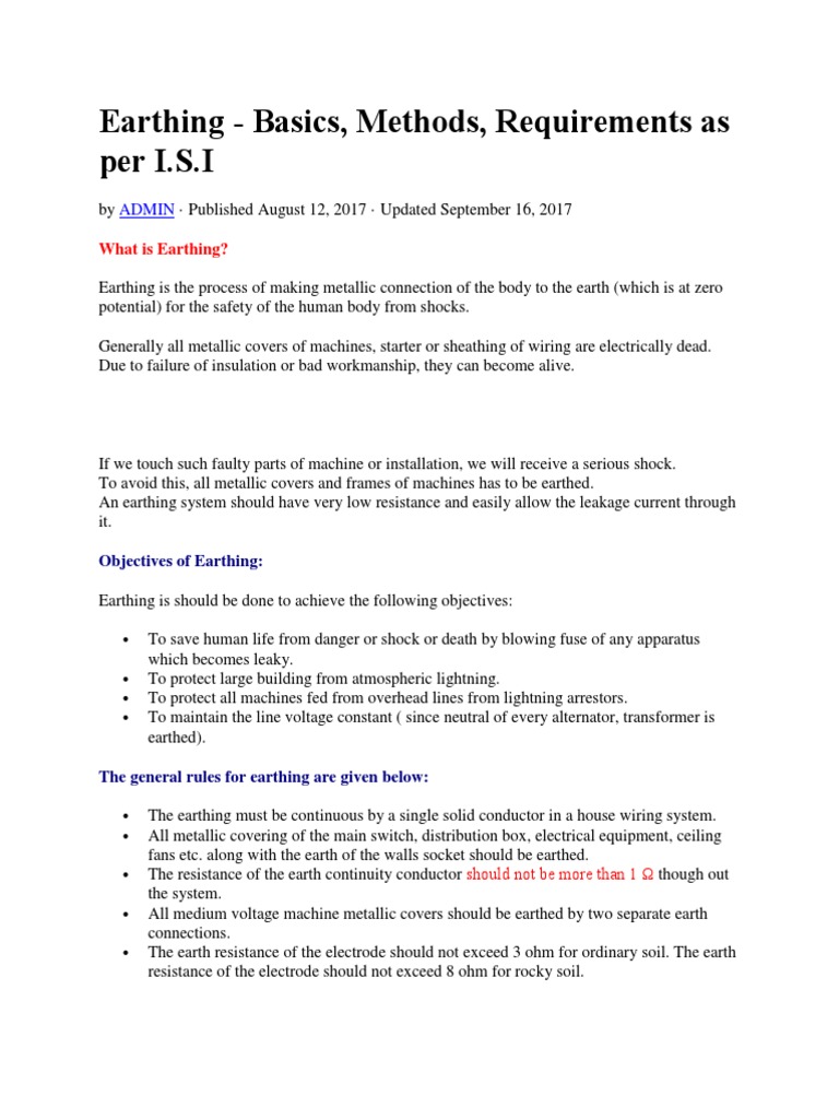 Earthing - Basics, Methods, Requirements as