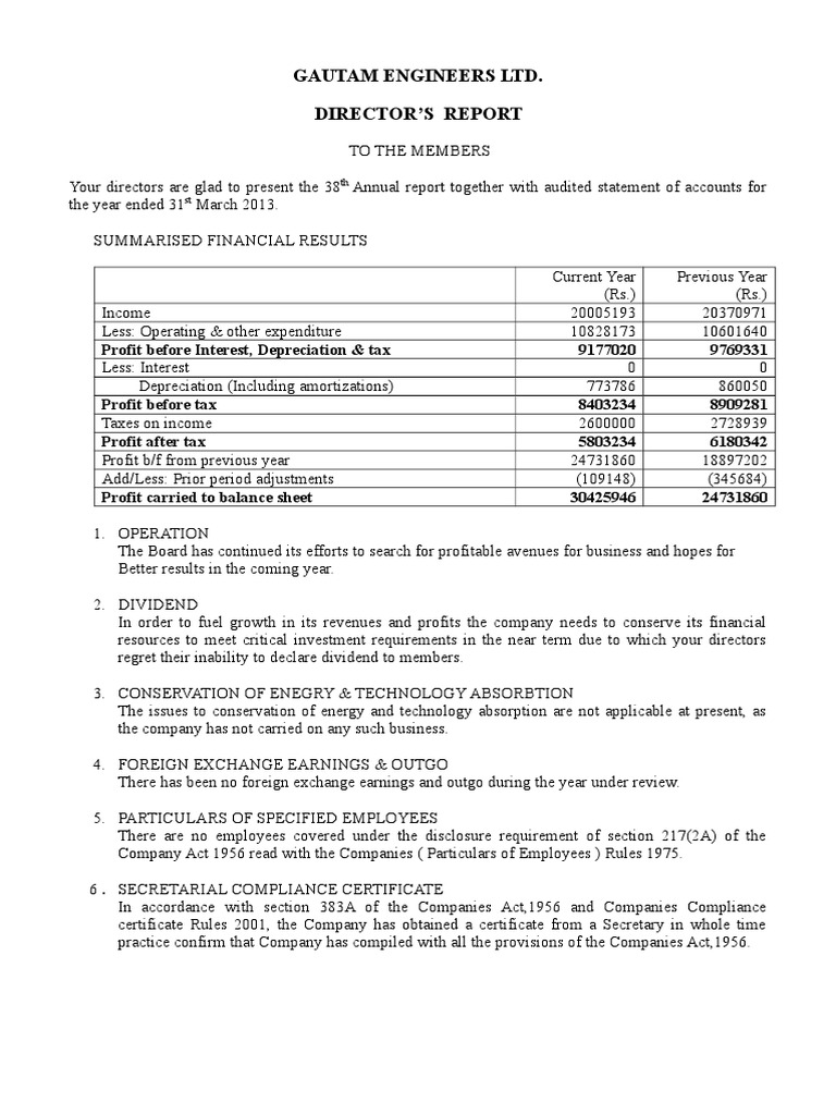 Your directors are glad to present the 38th Annual report together with audited statement of accounts for
