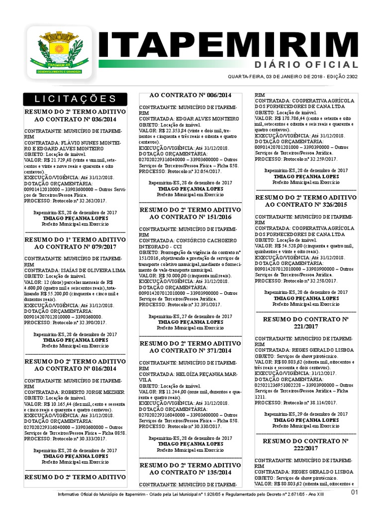 QUARTA-FEIRA, 03 DE JANEIRO DE 2018 - EDIÇÃO 2302