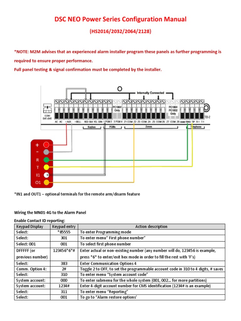*NOTE: M2M advises that an experienced alarm installer program these panels as further programming is
