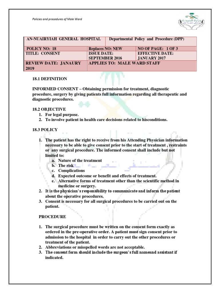 AN-NUAIRYIAH GENERAL HOSPITAL Departmental Policy and Procedure (DPP)