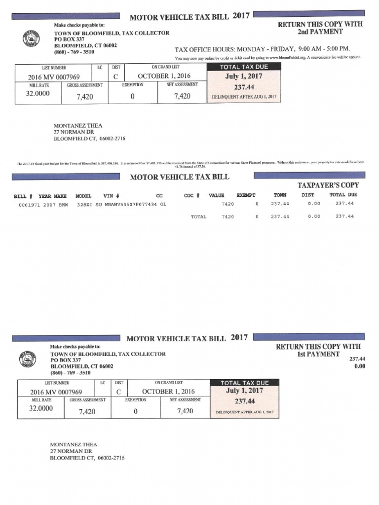 THEA MONTANEZ BLOOMFIELD TAX BILLS