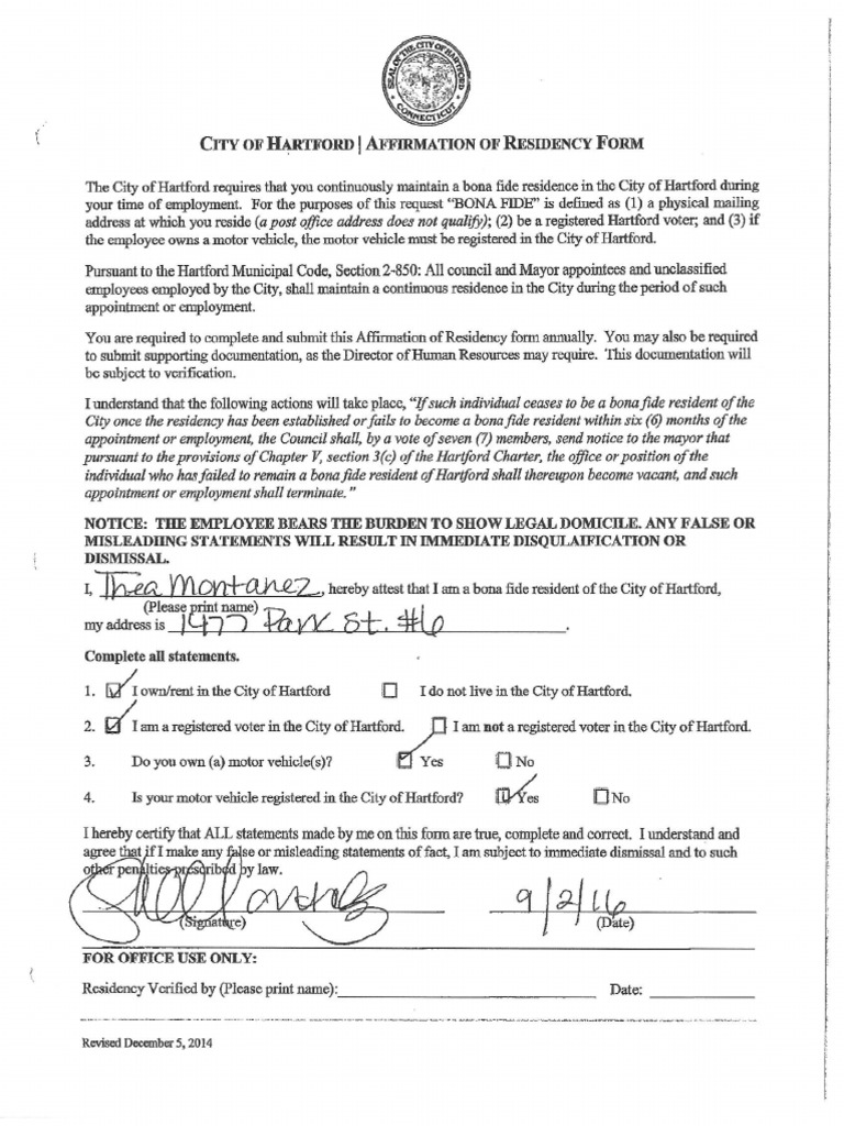 THEA MONTANEZ AFFIRMATION OF RESIDENCY FORM 2016