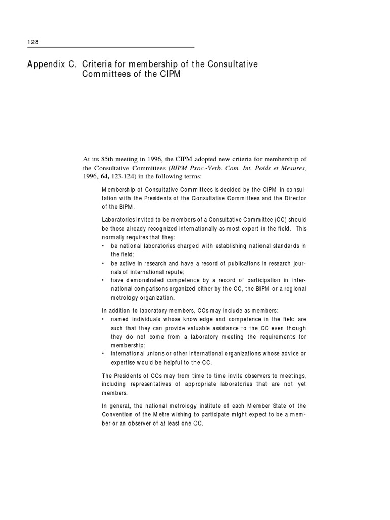 At its 85th meeting in 1996, the CIPM adopted new criteria for membership of