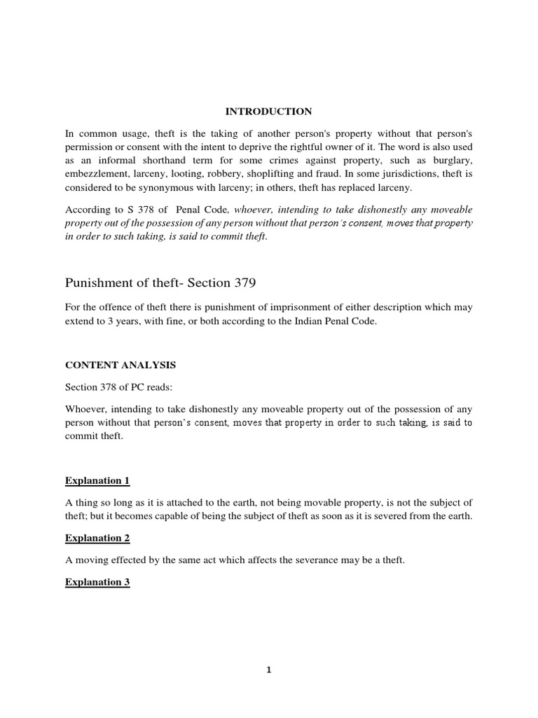 Punishment of theft- Section 379