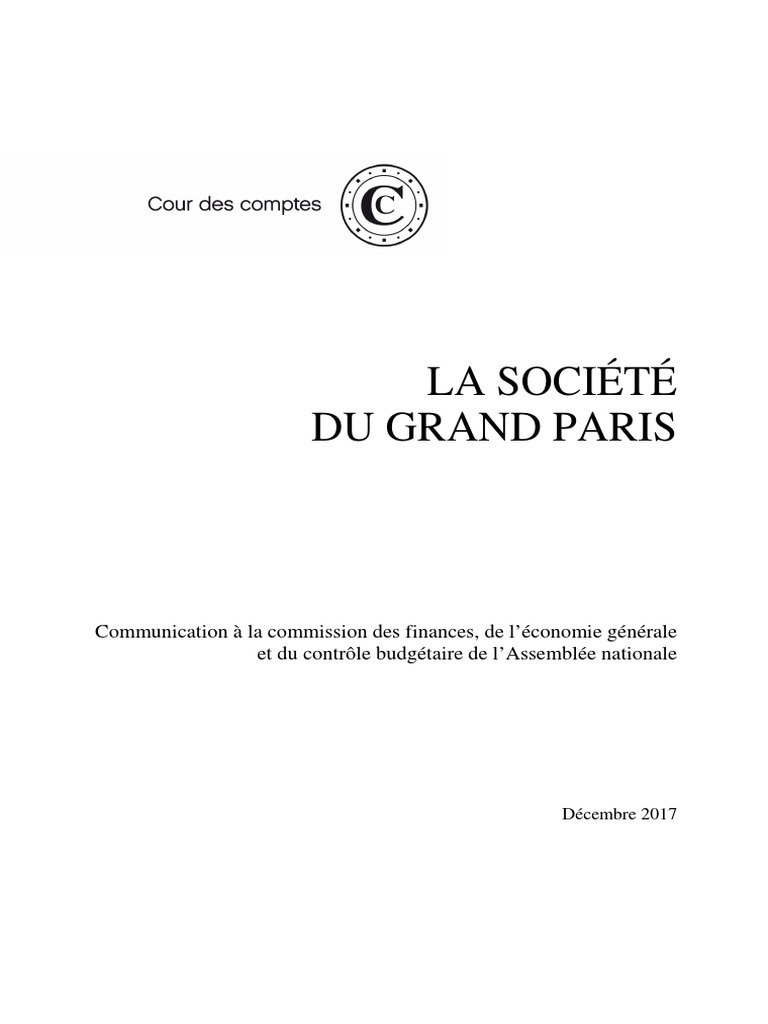 soutenable le programme du Grand Paris Express. La Cour a reçu une copie de ce rapport le