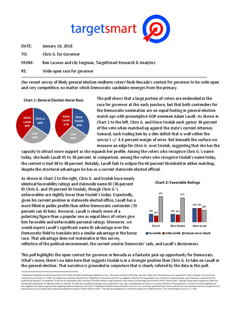 Chart 1 to the left, Chris G. and Steve Sisolak each garner 34 percent