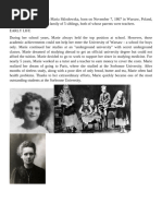 Marie Sklodowska was born in Warsaw in 1867. She was a brilliant student and