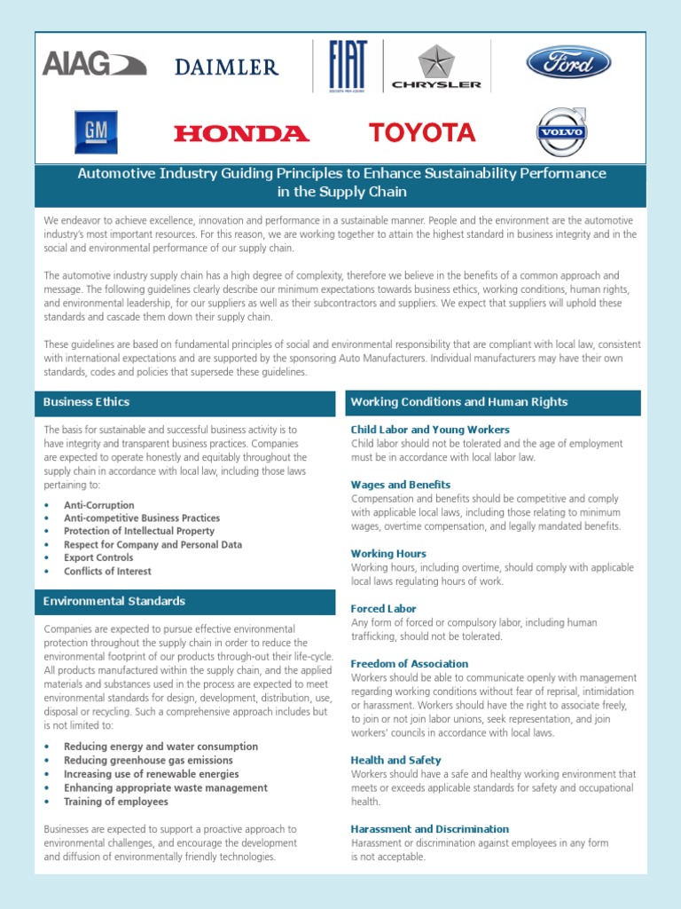 Automotive Industry Guiding Principles to Enhance Sustainability Performance