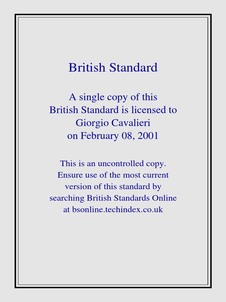 Licensed Copy: Giorgio Cavalieri, ALSTOM, 8-Feb-01, Uncontrolled Copy. © BSI