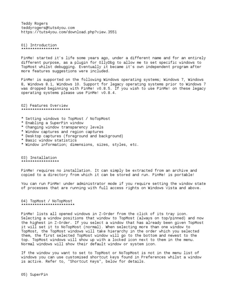 anything else - even PinMe!'s own menu to deselect it. You can only set one window