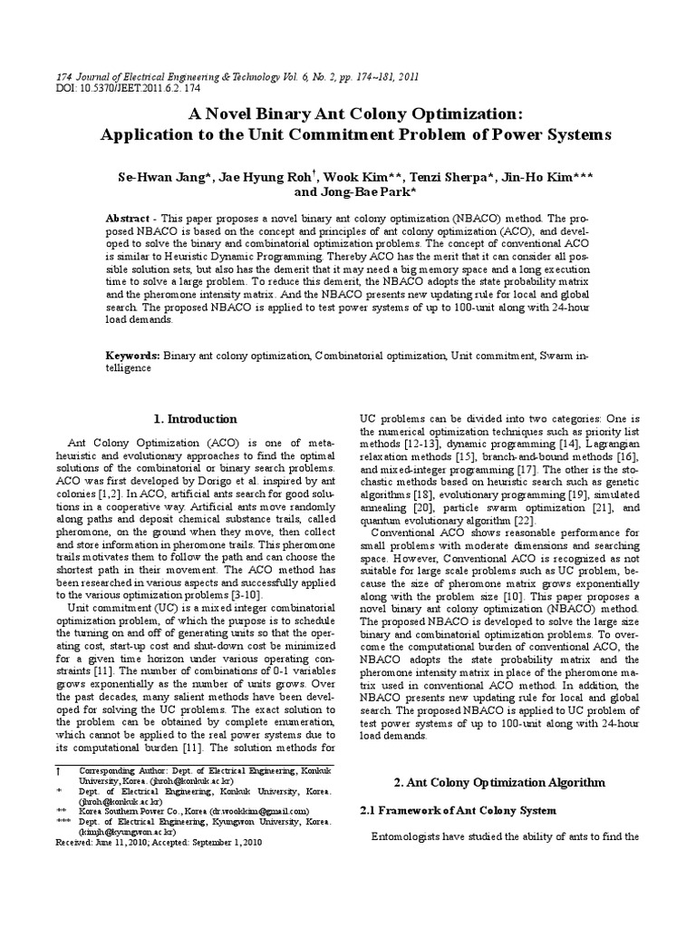 Keywords: Binary ant colony optimization, Combinatorial optimization, Unit commitment, Swarm in-