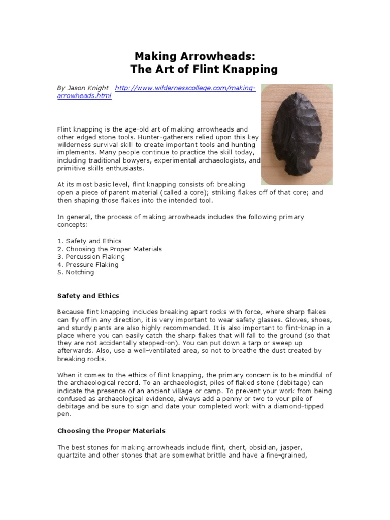 and sturdy pants are also highly recommended. It is also important to flint-knap in a