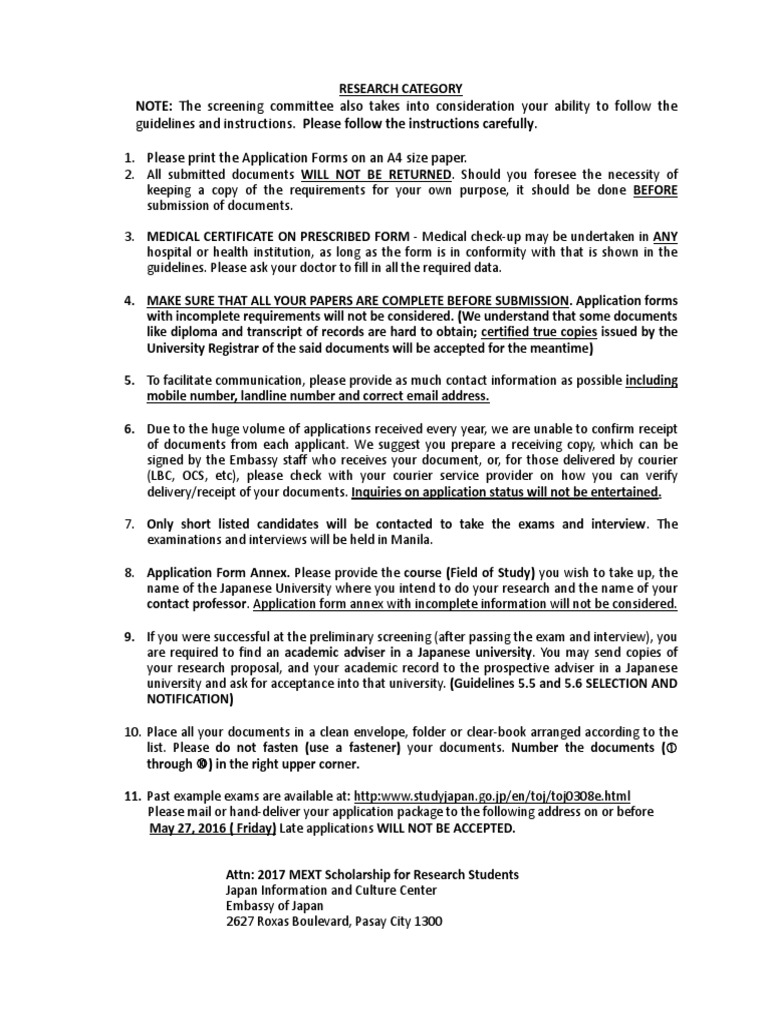 degree students) under the Japanese Government (MEXT) Scholarship Program for 2017 as follows.
