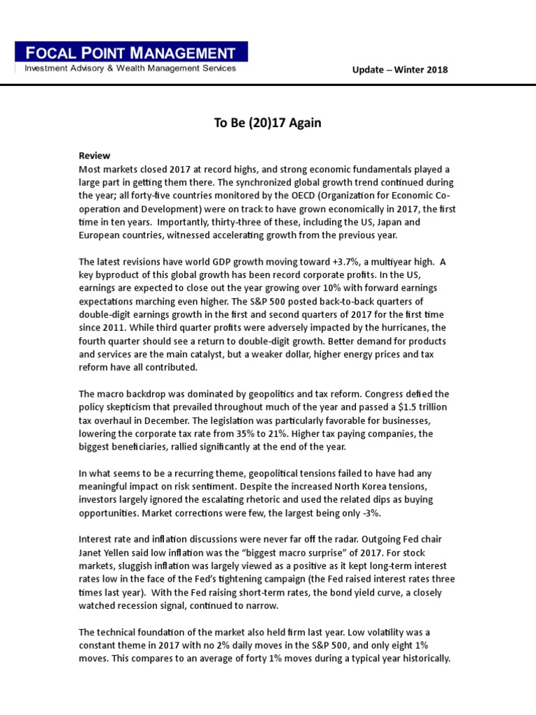 Most markets closed 2017 at record highs, and strong economic fundamentals played a
