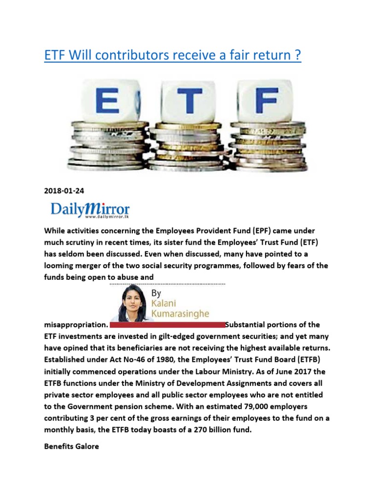 much scrutiny in recent times, its sister fund the Employees’ Trust Fund (ETF)