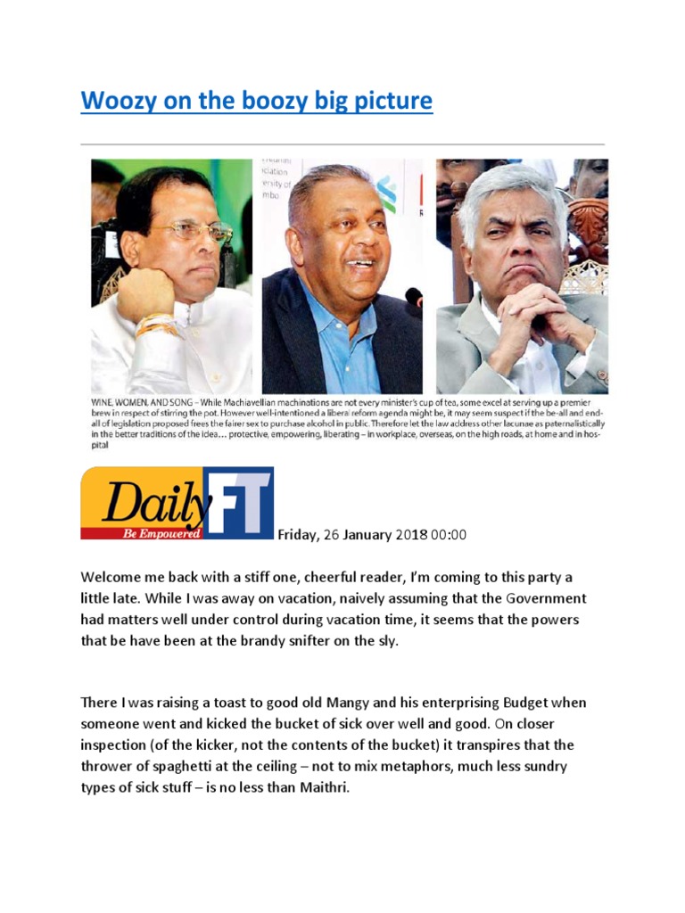Minister? Or drink to the health of the Excise Commissioner? What are you