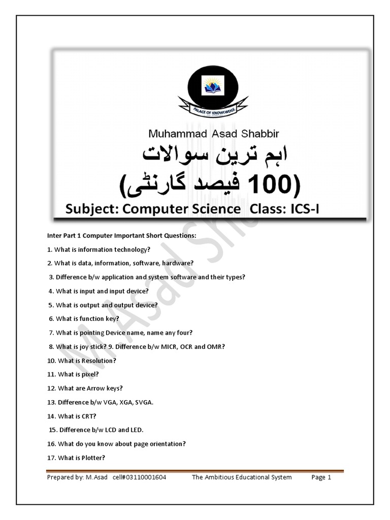 Prepared by: M.Asad cell#03110001604 The Ambitious Educational System Page 1