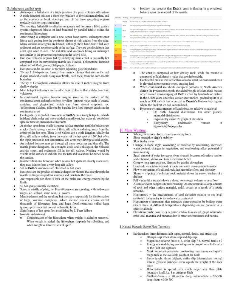 Aulacogens and hot spots o Isostasy: the concept that Earth’s crust is floating in gravitational