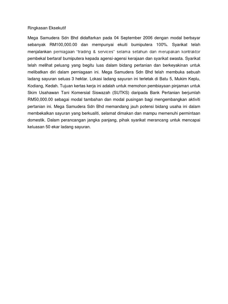 Kodiang, Kedah. Tujuan kertas kerja ini adalah untuk memohon pembiayaan pinjaman untuk