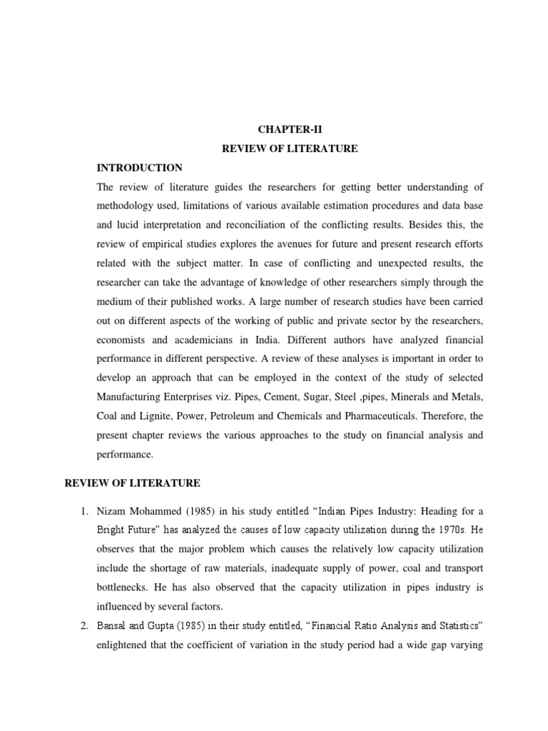 1. Nizam Mohammed (1985) in his study entitled “Indian Pipes Industry: Heading for a